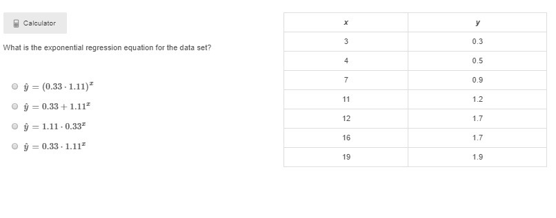 <span>The equation yˆ=31314⋅1.06^x estimates the population of a town x years after the year 1995. What is the estimated population of the town in the year 2000? Note that 2000 is 5 years past 1995, so x will be 5: