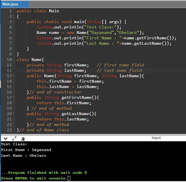 Name name = new Name("Dayanand","Ghelaro");