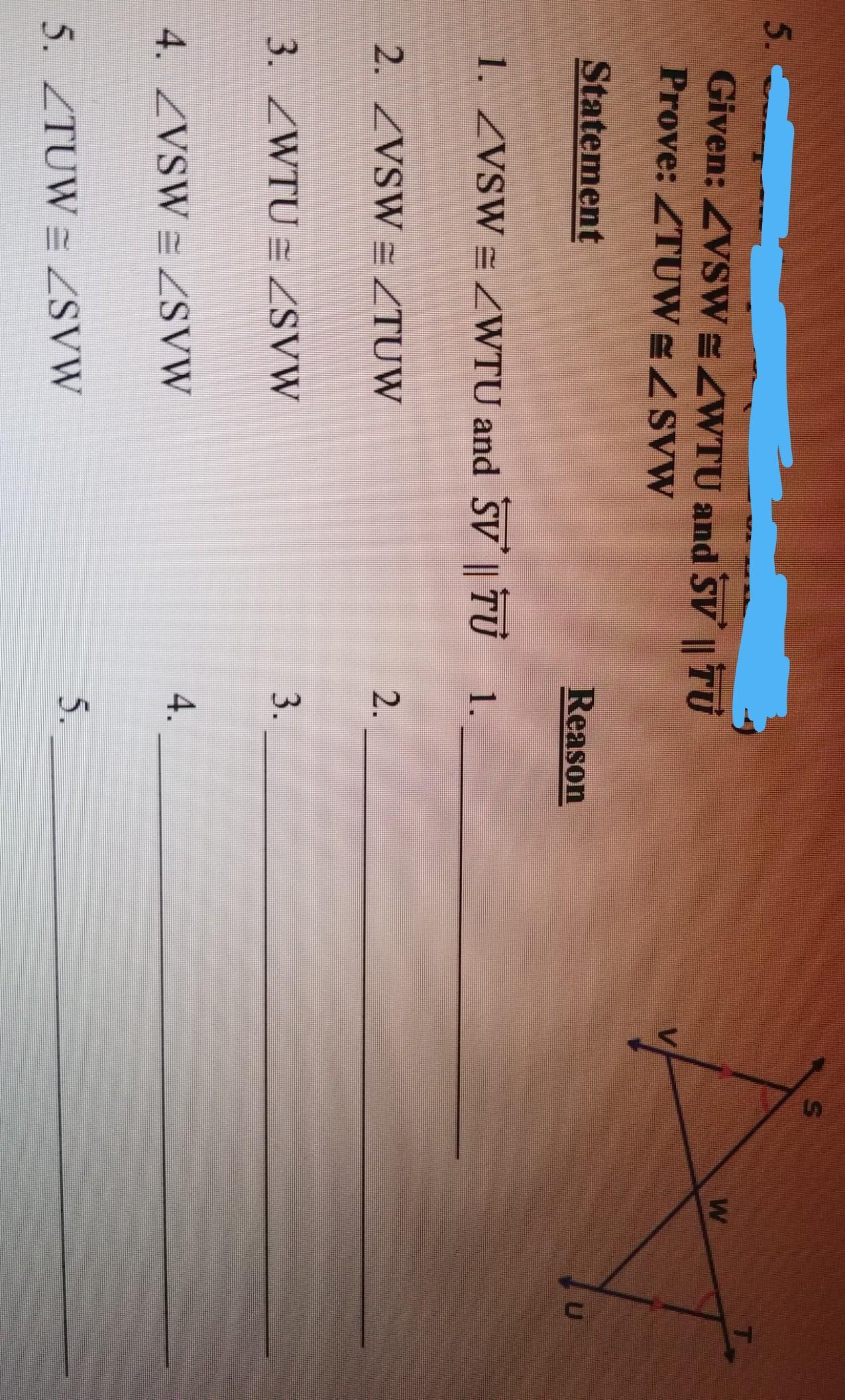 Reason 5. Since ∠ VSW = ∠ TUW and ∠ VSW = ∠ SVW