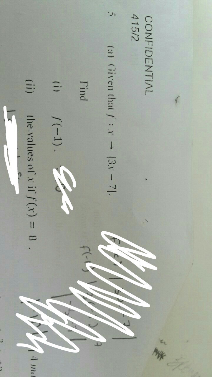 I think that since it says that f:x is |3x-7| and for i. it is f(-1), I believe it is suggesting/telling that x=-1 or f(-1) so |3*(-1)-7|. I don't know for sure but I believe it is 10.