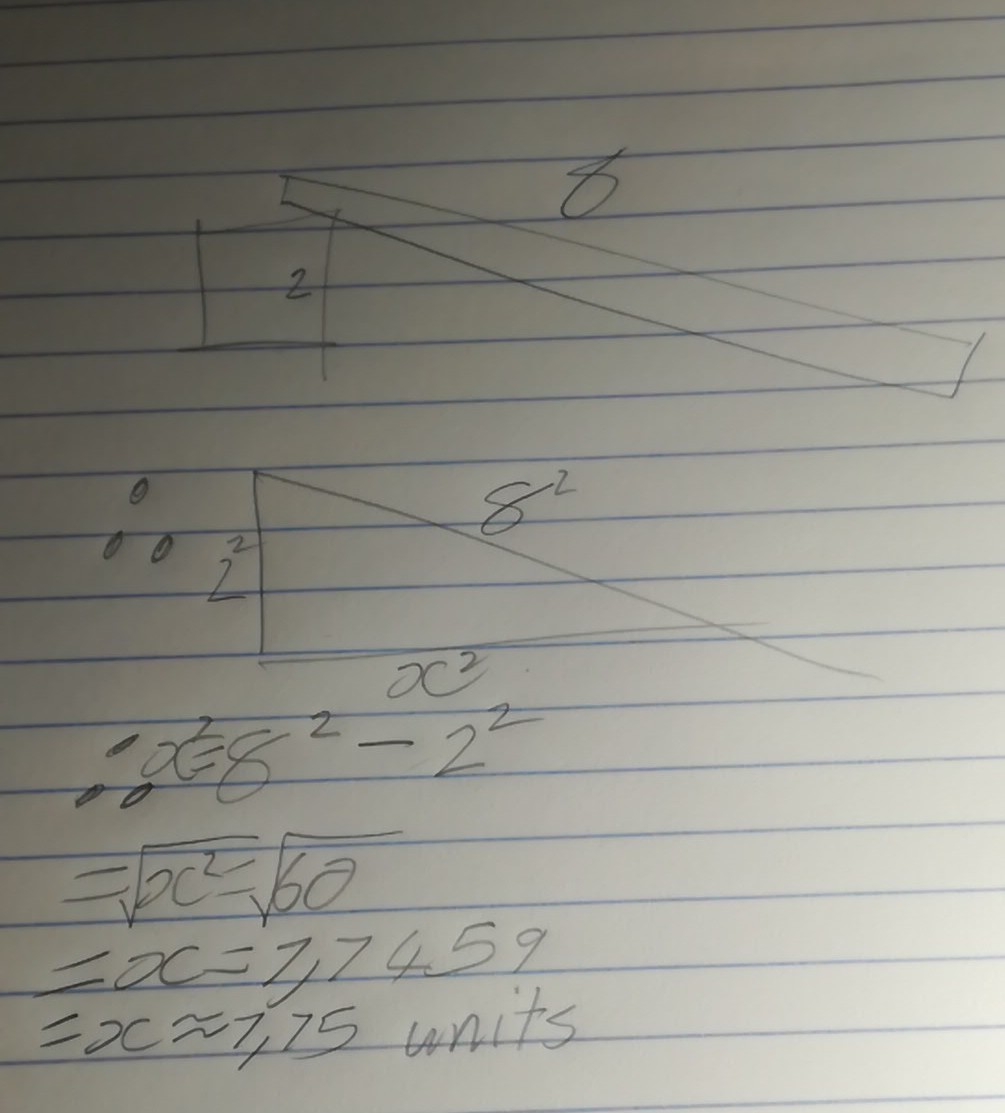 The hypotenuse or the ramp is = 8 feet