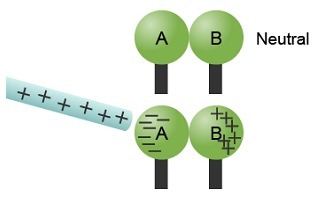 A positive rod is placed to the left of sphere A, and the spheres are separated. Which best describes the spheres?