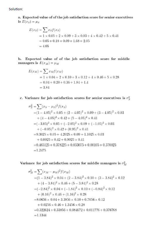(a) The Expected value of the job satisfaction score for senior executives is 4.05.