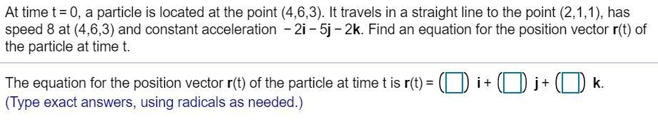 r(t) = (1/2)(-2i -5j -2k)t^2 +((-16/√33)i -(40/√33)j -(16/√33)k)t +(4i +6j +3k)