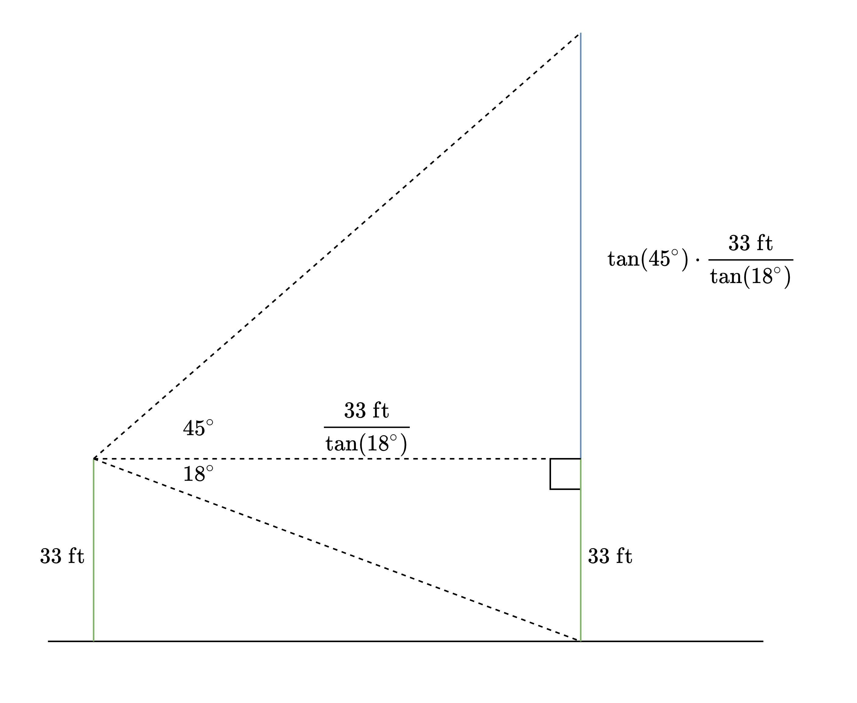 The height of the opposite building would be the sum of the two parts, which is approximately: