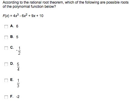 ... ±1/4, ±1/2, ±1, ±5/4, ±2, ±5/2, ±5, ±10