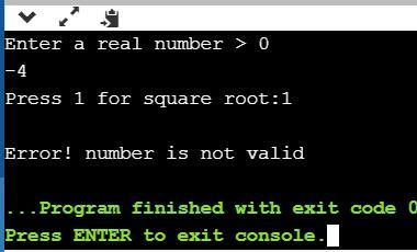 numbers entered by the user. i.Addition of two numbers. ii.Subtraction of two numbers. iii.Multiplication of two numbers. iv.Division of two numbers (check for the user input such that dominator ≠0).r v. Negate the two numbers.b) Use the case a structure to find the square root for a real number > 0. The code will accept the number from the user and check if it is > 0 to calculate the square root, otherwise it gives an error.