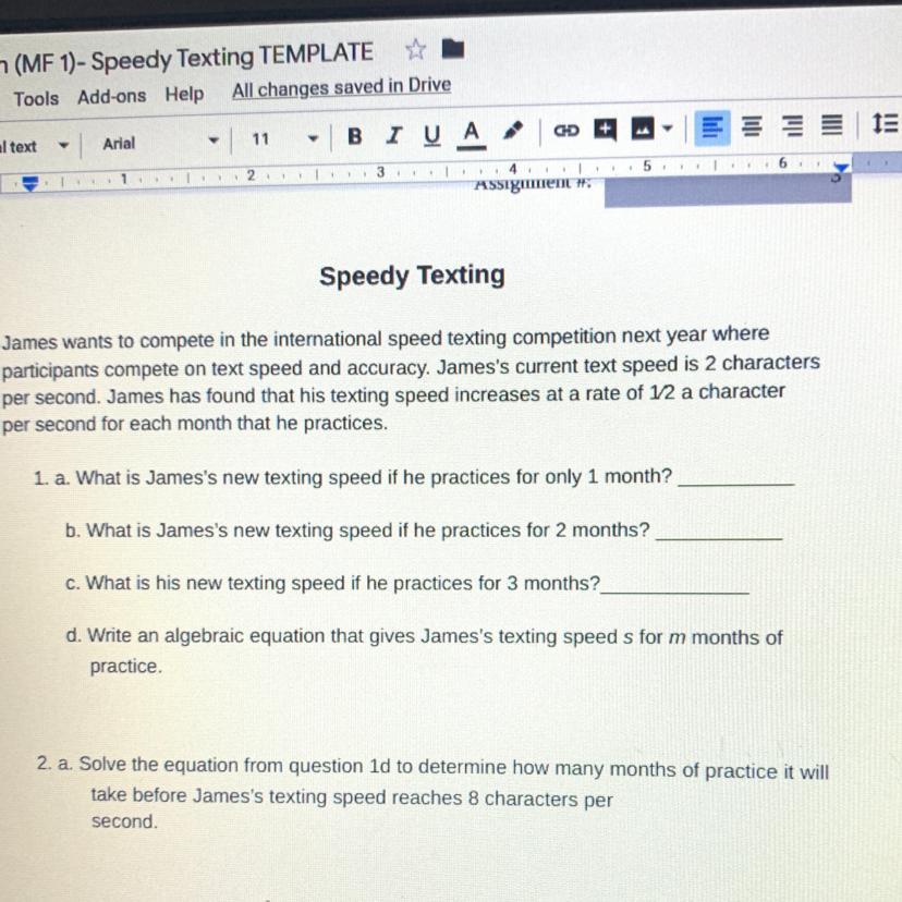 Hence, after 12 months his texting speed will reach 8 characters per second.