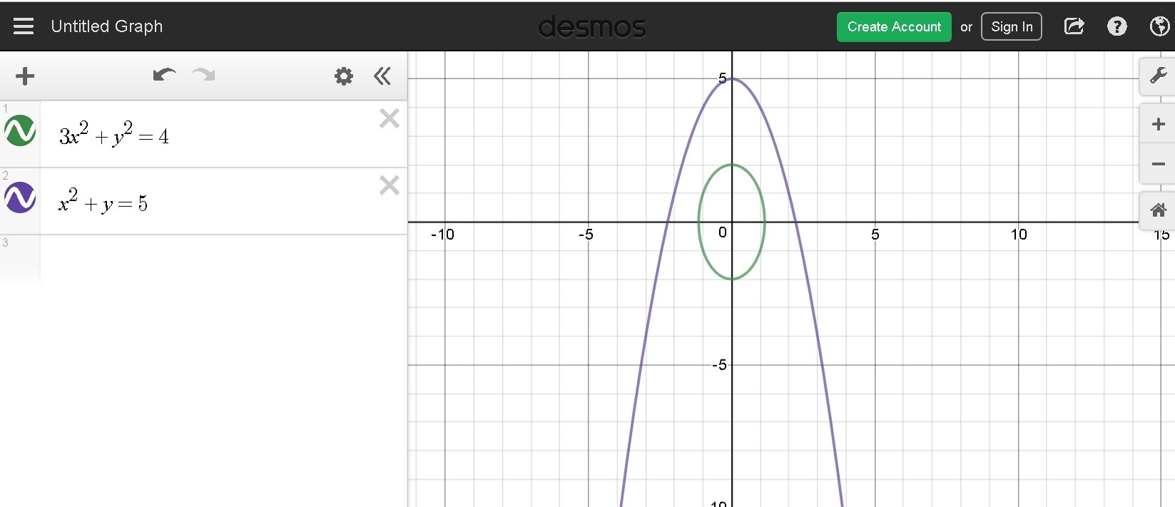 The solution of the system of equations is the intersection points both graphs
