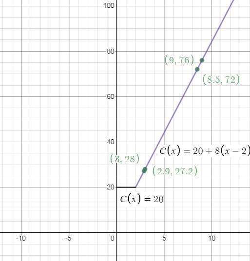 All ordered pairs, in the form of (hours, cost) are (2.9, 27.2), (3,28), (8.5, 72) and (9,76).