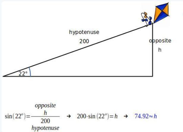 the question "how long is the kite?" is not quite clear, i suppose it was asking how far it was from the ground (b) or horizontally (a). I calculated both, I hope this helps