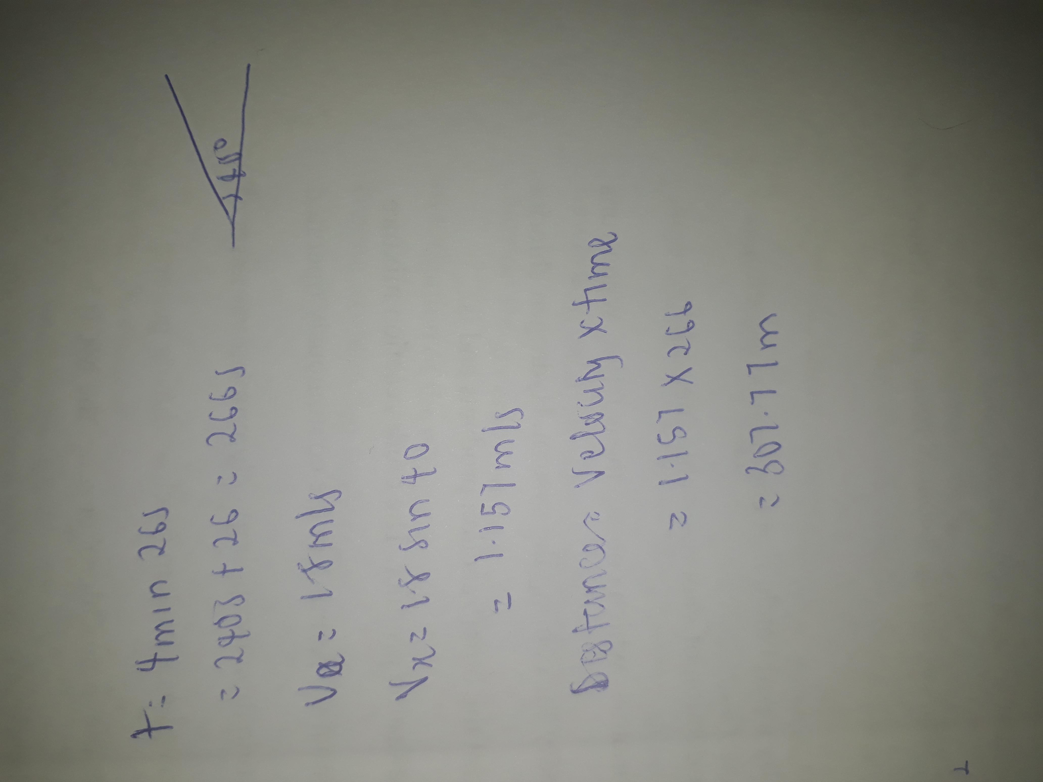 Bob heads out into a lake at an angle of 40◦ with respect to the shore. If his boat is capable of a speed of 1.8 m/s, how far fr
