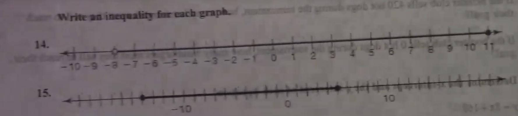 14.) The line has an open circle on -8, and a closed circle on 11.