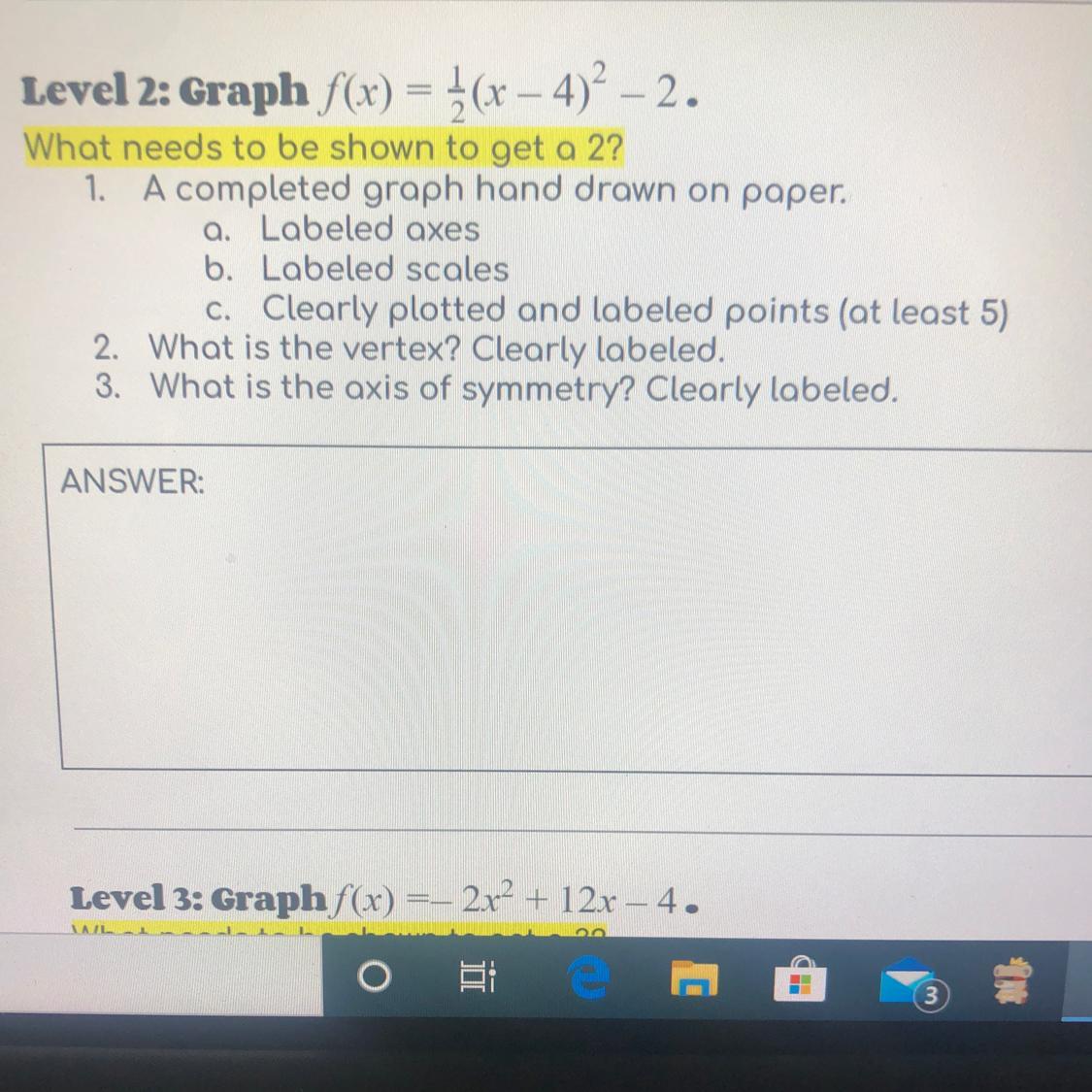 If required, draw the line of symmetry on the graph and label itTo graph this curve, we need to find some points on it.