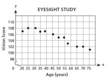 B)Based on the coordinates of the given data points, what is the actual actual vision score when x=65?