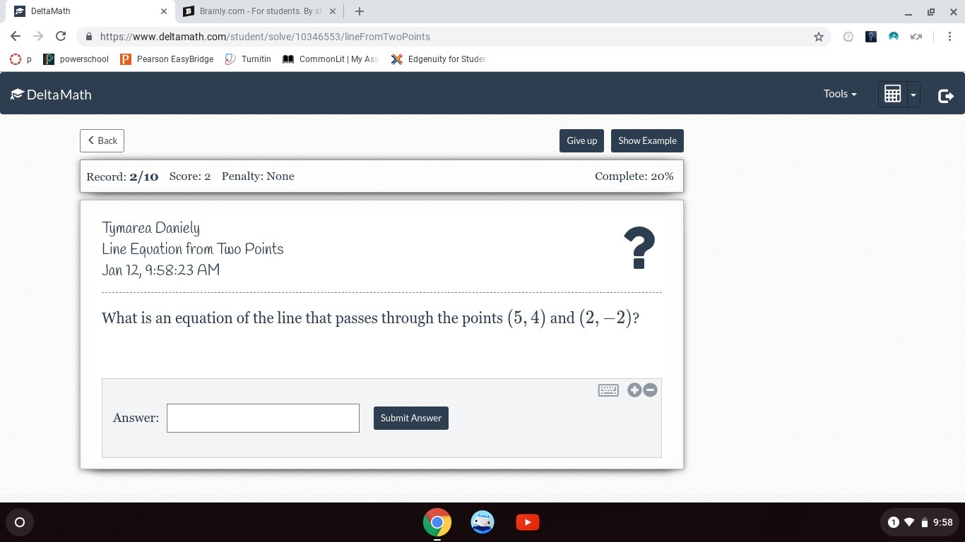 We have the points (5, 4) and (2, -2). Substitute: