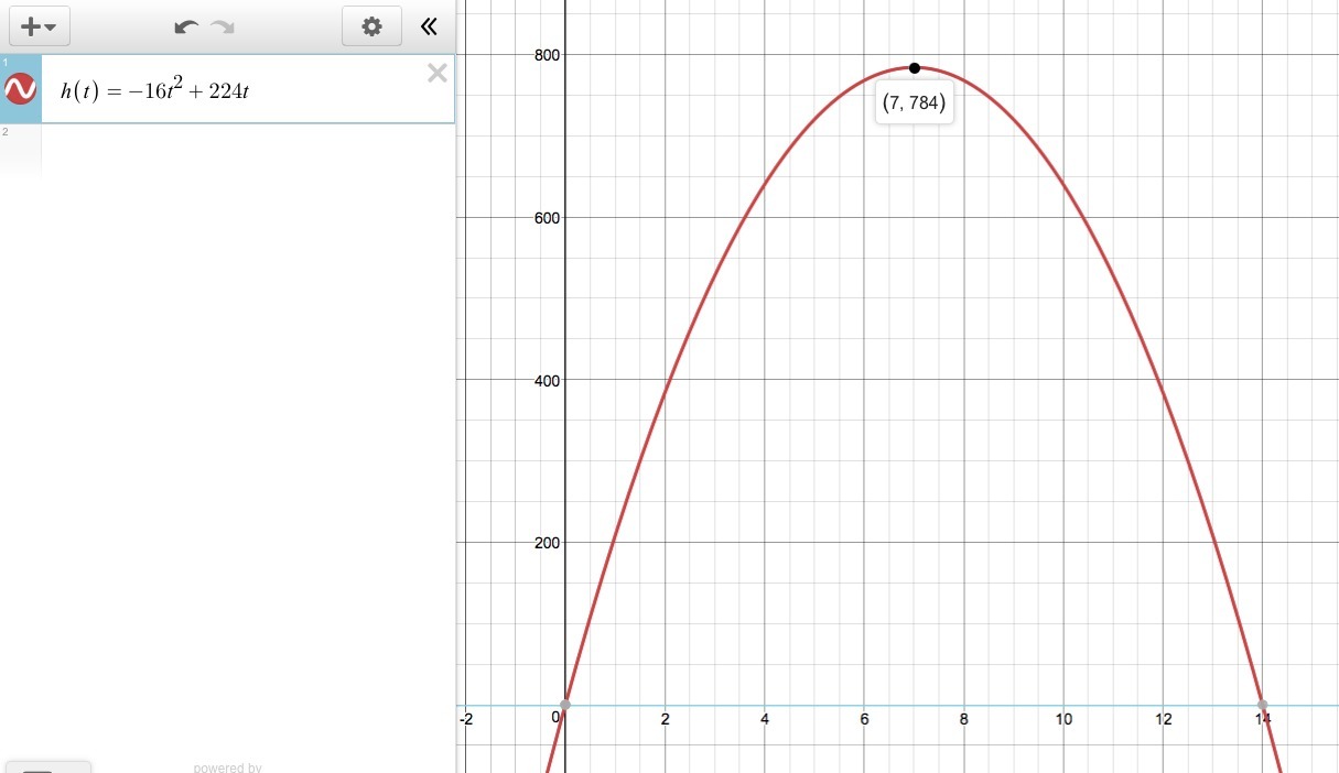 The vertex of this downward-opening parabola is (7, 784), so ...