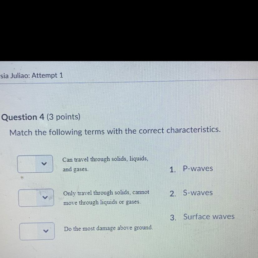 P-waves --> 1. Can travel through solids, liquids, and gases