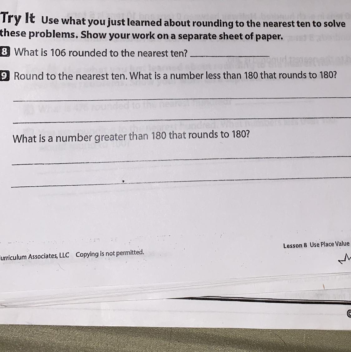 We need a number greater than 180 that will round down to 180 from the tens place
