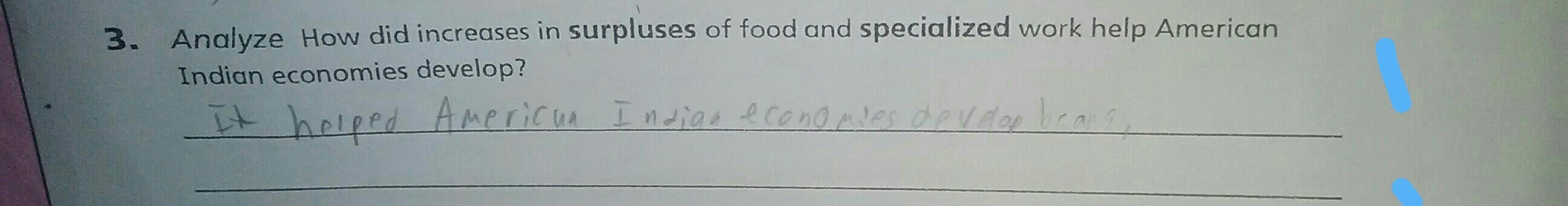 Q: How did increases in surpluses of food and specialized work help American Indian economies develop?