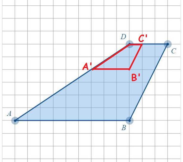 You're required to basically scale the figure down. Angles will remain the same, horizontal lines will remain horizontal, but lengths will be 1/3 of the original. In particular the length DC will be only 1 square, bringing C' only one to the right of D. The distance DB will also shrink from 6 to two squares, below D. Finally, the point A' will be on the line AD, on the horizontal containing B'.