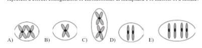 Option A in the diagram depicts this arrangement of homologous chromosomes in the centre of the cell. Note that, each chromosome has replicated to form SISTER chromatids held together at the centromere. These chromosomes will be pulled apart in the next stage (Anaphase).