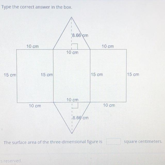 Then I found the area for the triangles which is A=(1/2)(8.66)(10). Which equals 43.3, then multiplied that by 2.