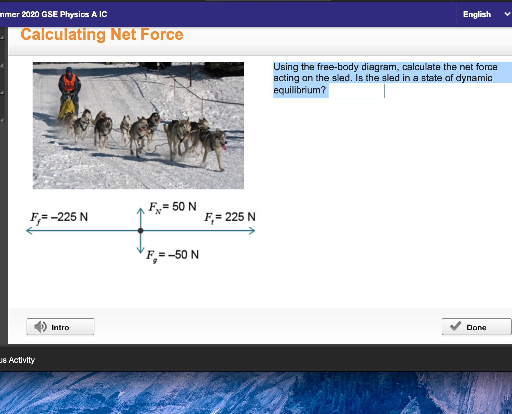 Since the net force acting on the sled is zero, the sled is in some state of equilibrium...