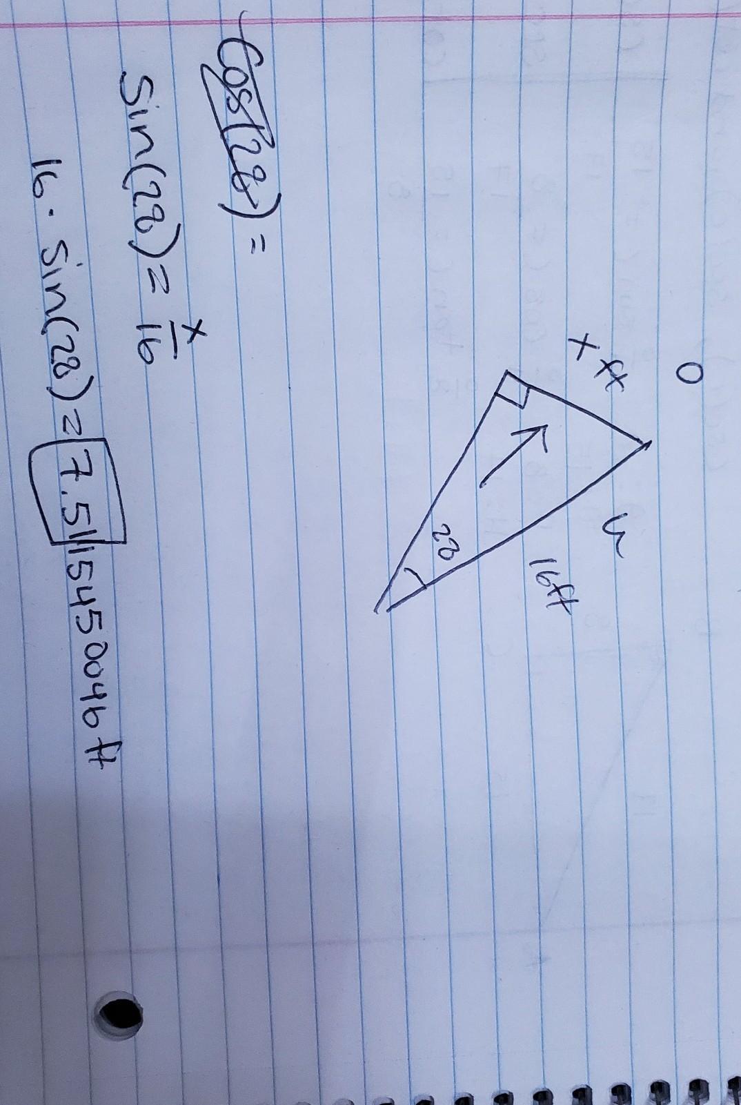 This triangle is asking for the opposite side. We are given the hypotenuse and theta (28°.) Sin is opposite over hypotenuse.