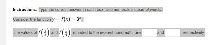 Type the correct answer in each box. Use numerals instead of words. Consider the function. The values of and, rounded to the nea