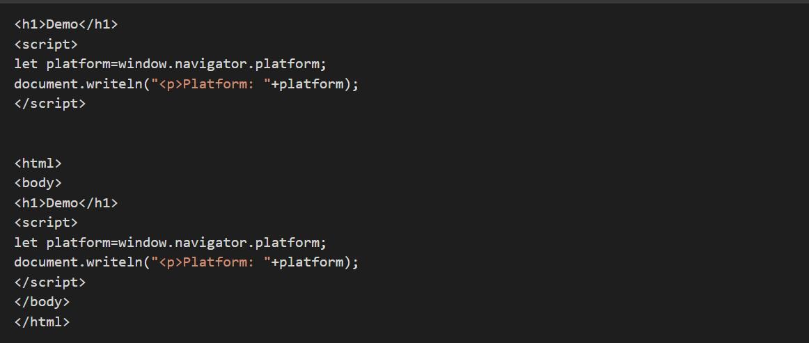Using the knowledge in computational language in JAVA it is possible to write a code that the document object to display the current platform in a tag in the webpage
