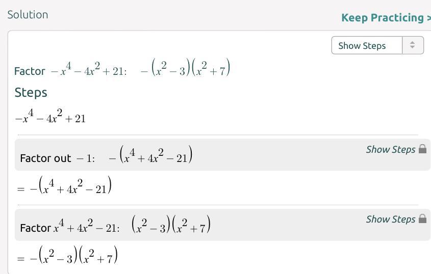 Step-2 : Find two factors of -21 whose sum equals the coefficient of the middle term, which is 4 .