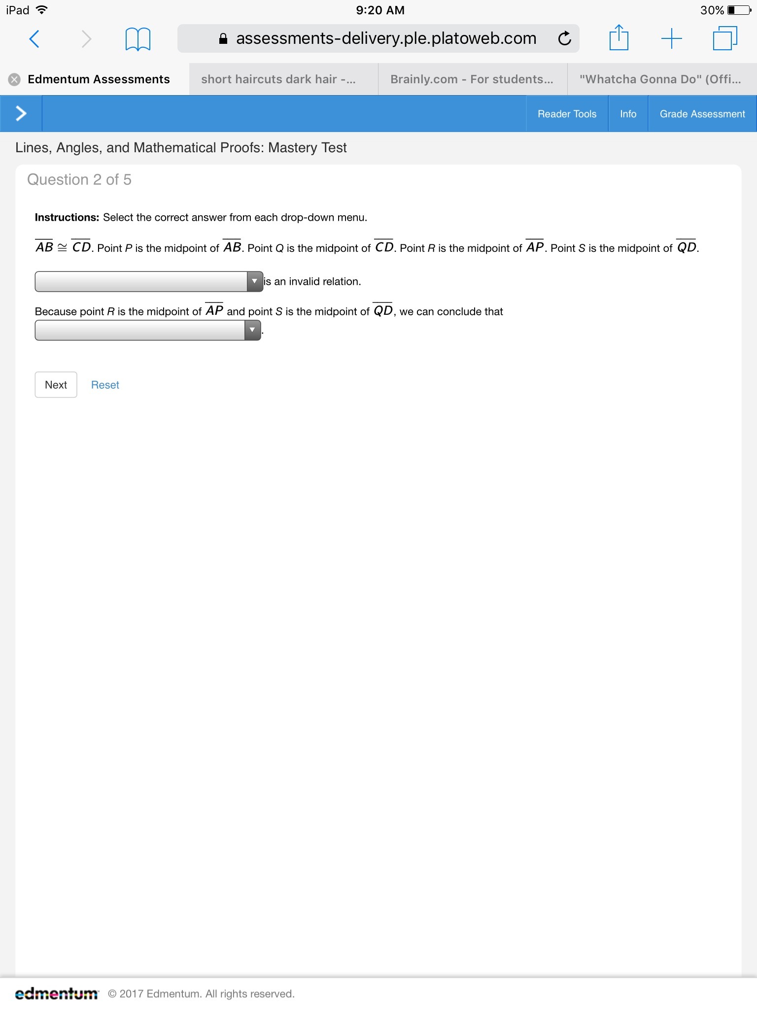 Segment AP is congruent to segment PQ.