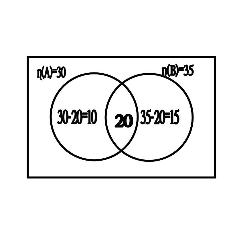 n(AU B) = n(A) +n(B)- n(A⋂ B) = 30+35 -20 —45.