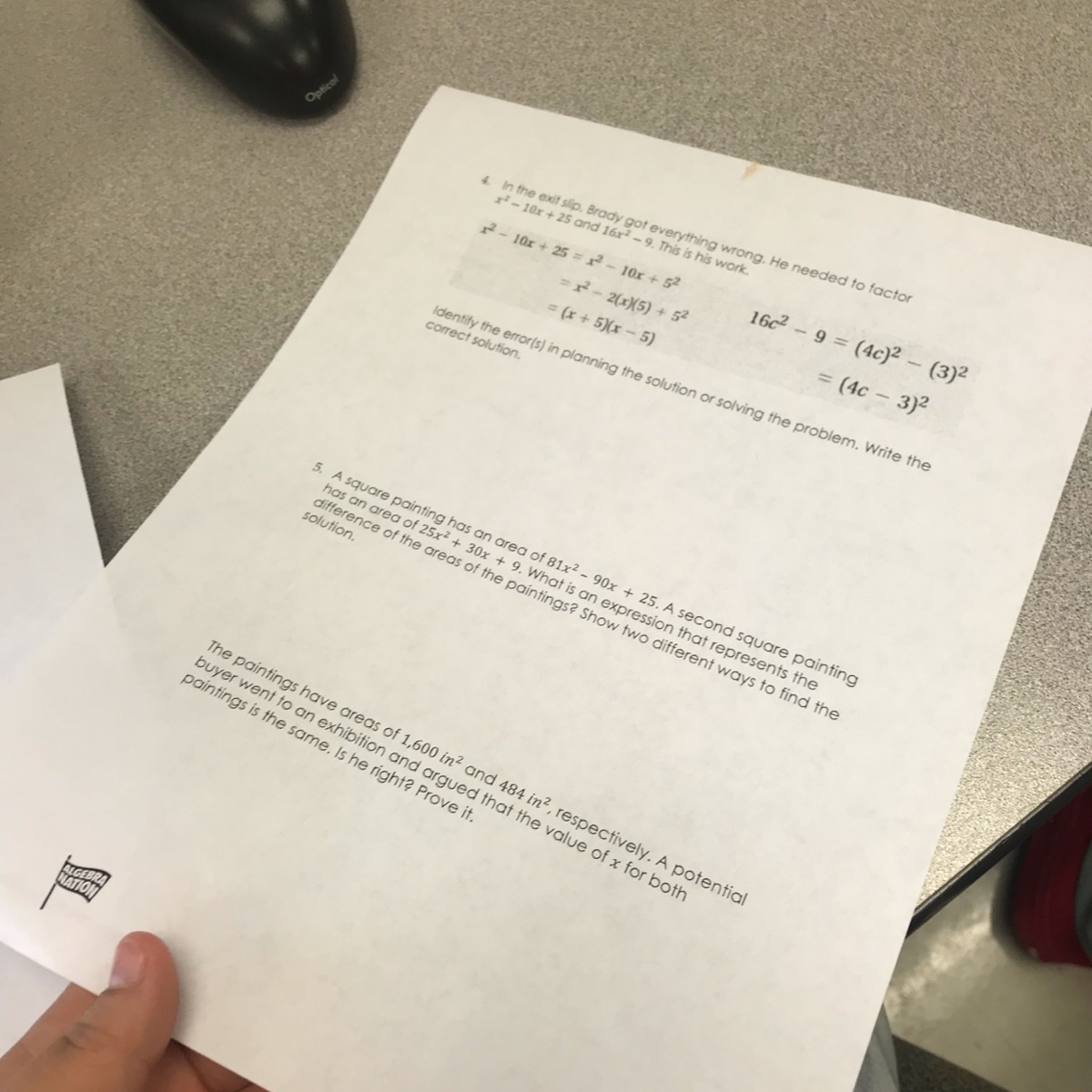 Question 4. (x-5)² and (4c-3)(4c+3)