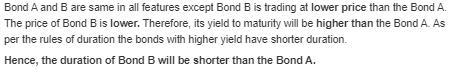 In each of the following pairs of bonds, select the bond that has the highest duration or effective duration: a. Bond A is a 6%