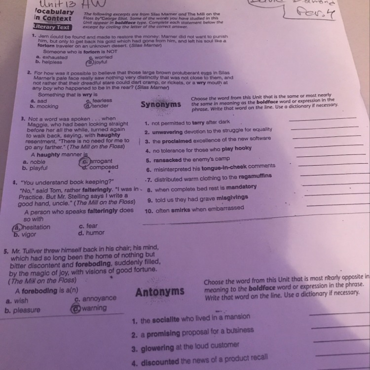 The beautiful <u>unicorn</u> lived in total <u>solitude</u>. Because of her <u>solo</u> existence, she found life to be quite <u>monotonous</u>. She even caught herself at times giving a <u>monologue</u> of encouragement that no one else would hear. At times, it seemed as if her only comfort was the <u>solar</u> energy from above. One day, an incredibly <u>unique</u> thing occurred. Three unicorns whom she had never met appeared in her clearing. Although their voices were rather <u>monotone</u>, they spoke in perfect <u>unison</u>. They said they had come to <u>unify</u> all the unicorns of the forest and that none should be alone. Happily, she joined their group and galloped to her new home.