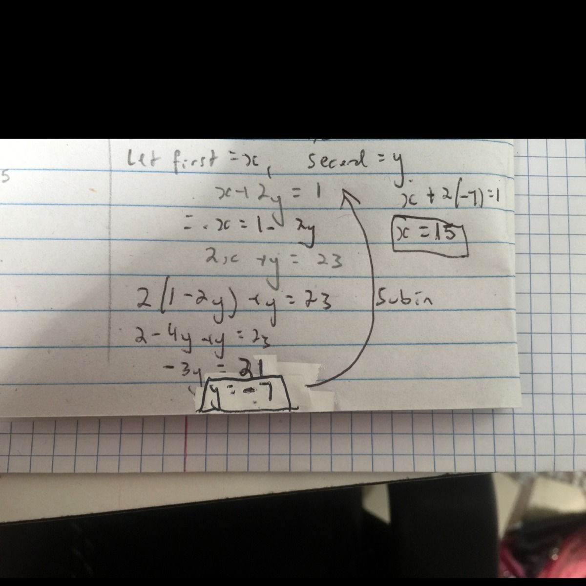 Y= -7