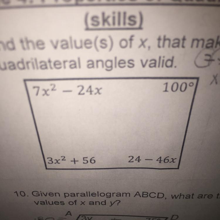 (7(-2)^{2}-24(-2))=76\°\\100\°\\(3(-2)^{2}+56)=68\°\\24-46(-2)=116\°