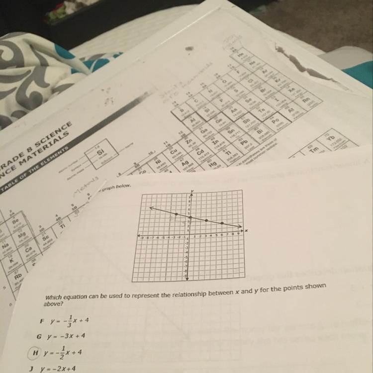 If we put this together to create our y = mx + b, we will get -1/3x +4.