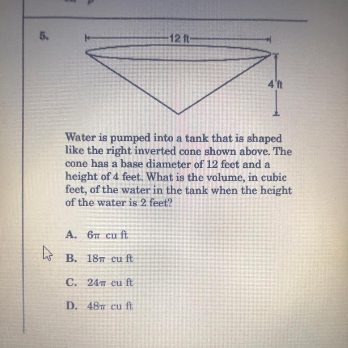 Now we know that the answer is C. 24pi cu ft.