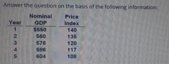 Real GDP = Nominal GDP for year 1 / Price index for year 1 * 100