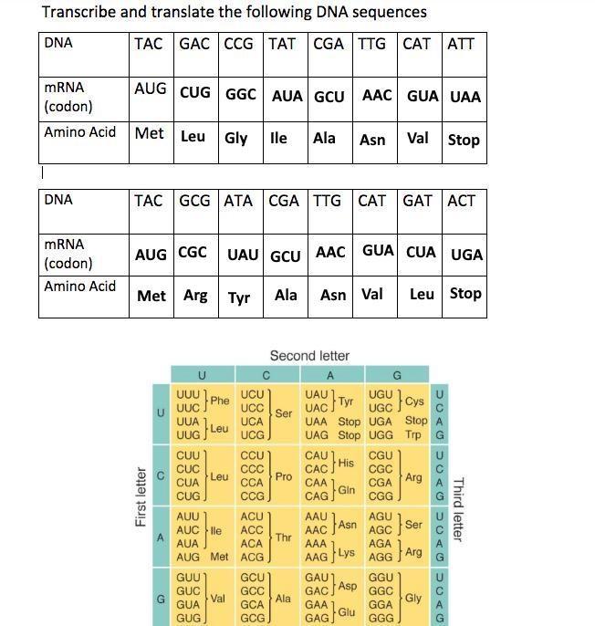 It's pretty easy to interpret the codon table as the first, second and third letters are indicated.
