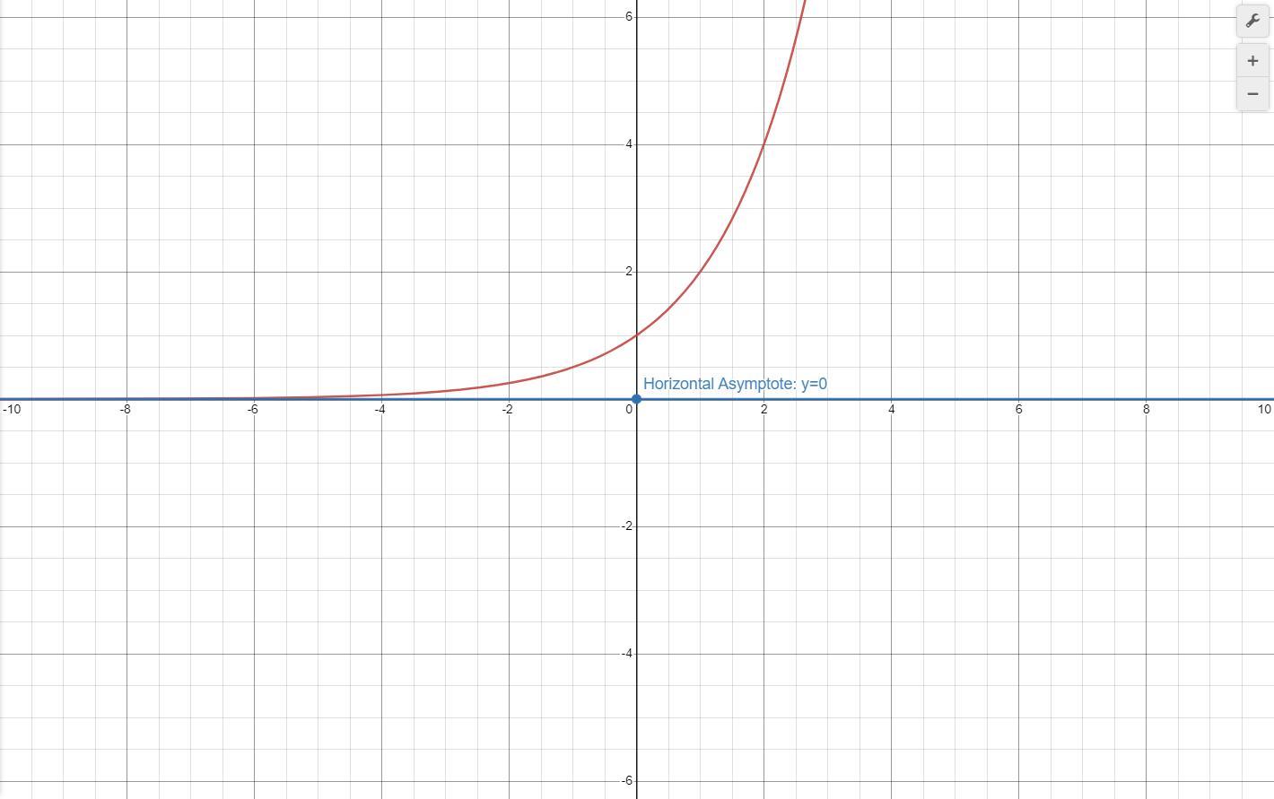 The exponential function shown has a horizontal asymptote at the line y=0, which means that y will approach 0 as the value of x decreases. Therefore, B is correct.