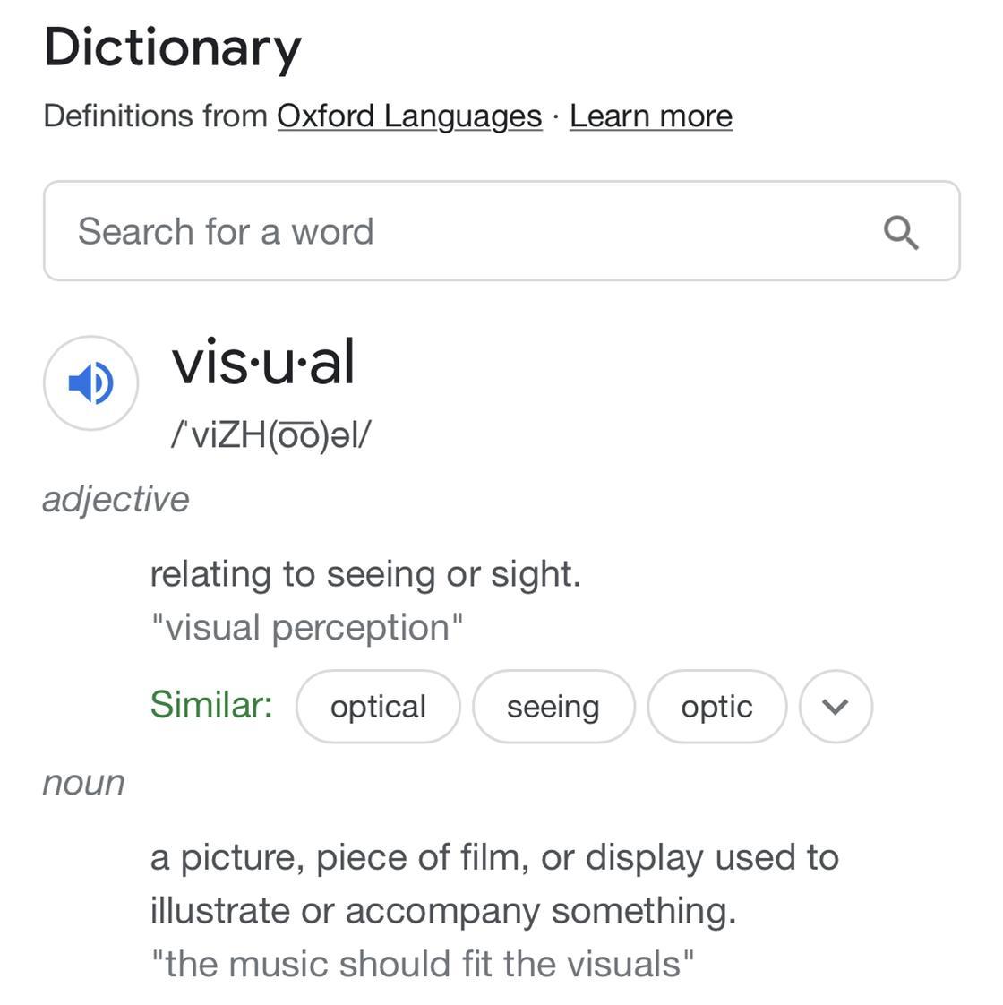 The definition of visual: