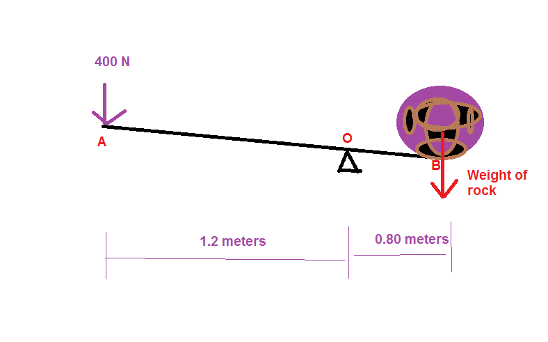 Moment of Rock's weight : 490 N * 0.80 meters = 392 N-m
