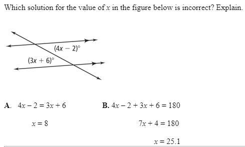 Which solution for the value of x in the figure below is incorrect? Explain.