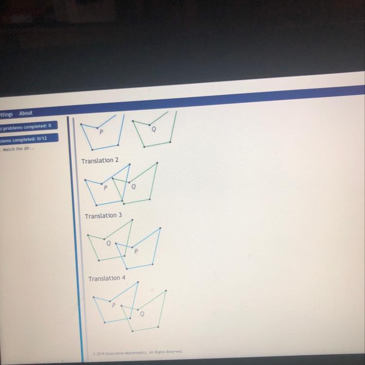 1. Match the directed line segment with the image of Polygon P being transformed to Polygon Q by translation by that directed li