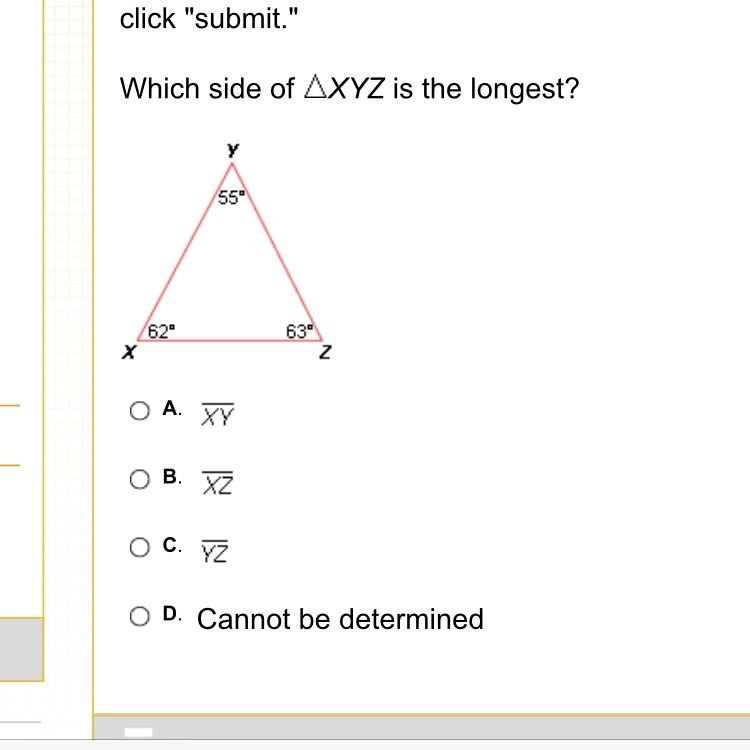 Angle Z in the given triangle is the largest angle and therefore, the side opposite to this angle is the longest side of the triangle.