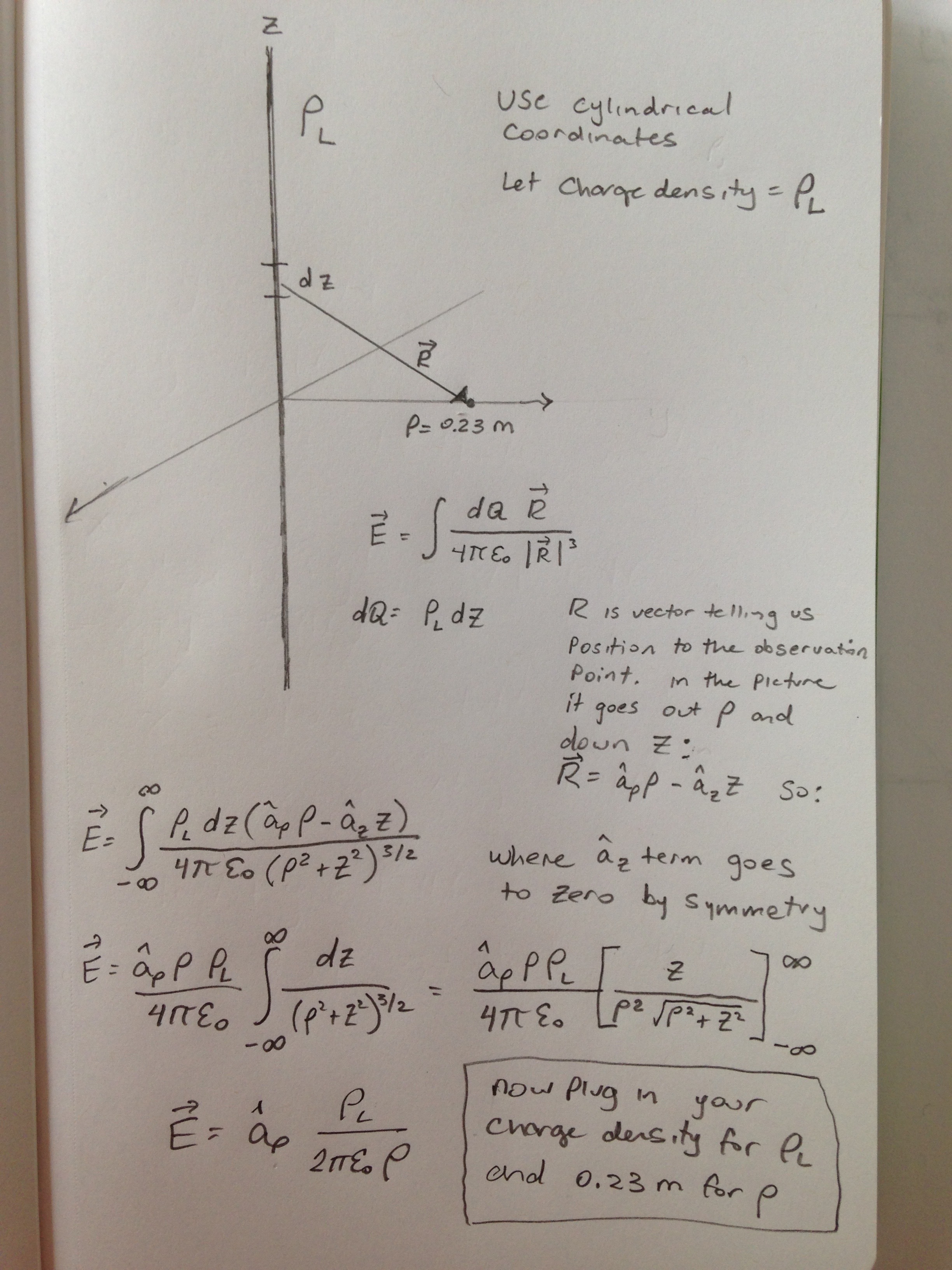 calculate the electric field at distance of 320 cm from an infinitely long wire carrying a charge per unit length 8.3 cm